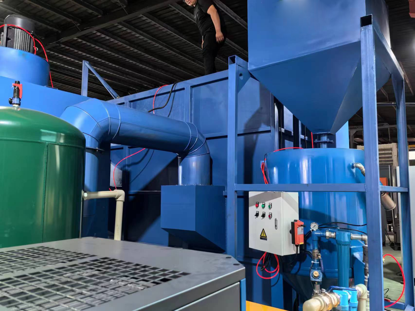 4.彩鋼消音噴丸室,室體耐腐蝕性高,消音效果好,外型美觀。